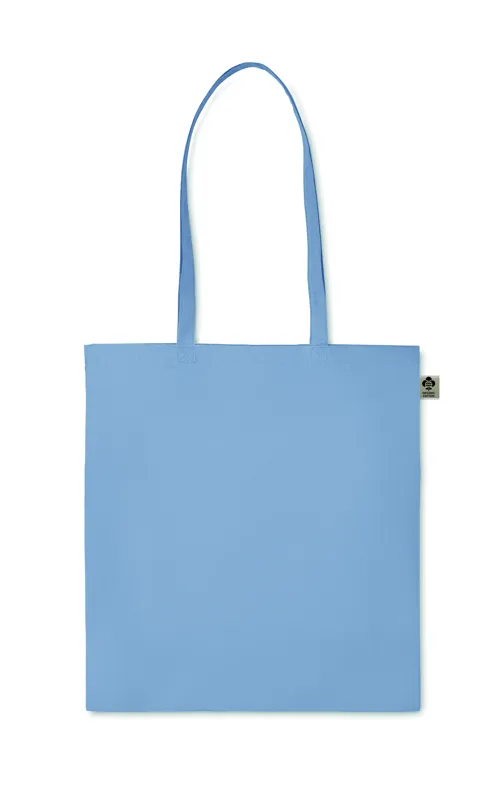 Organikus pamut bevásárlótáska, hosszú fülekkel. Klasszikus bevásárlótáska szabással, a napi élelmiszerek vagy egyéb tárgyak szállítására készült. A hosszú fülekkel kézben vagy vállon is hordható. 140 g. vastag, 100%-ben természetes organikus pamutból.