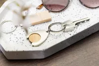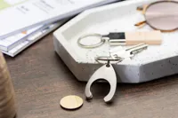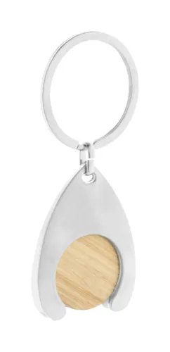 Fém kulcstartó bambusz bevásárlókocsi érmével és fém karikával. Az érme mérete: ø23×2 mm.
